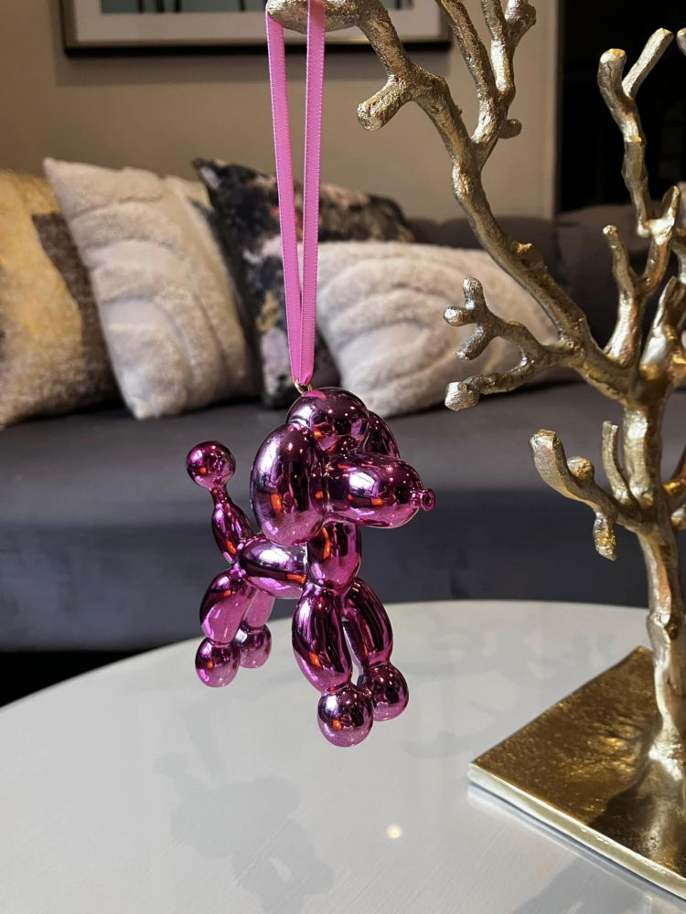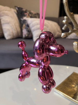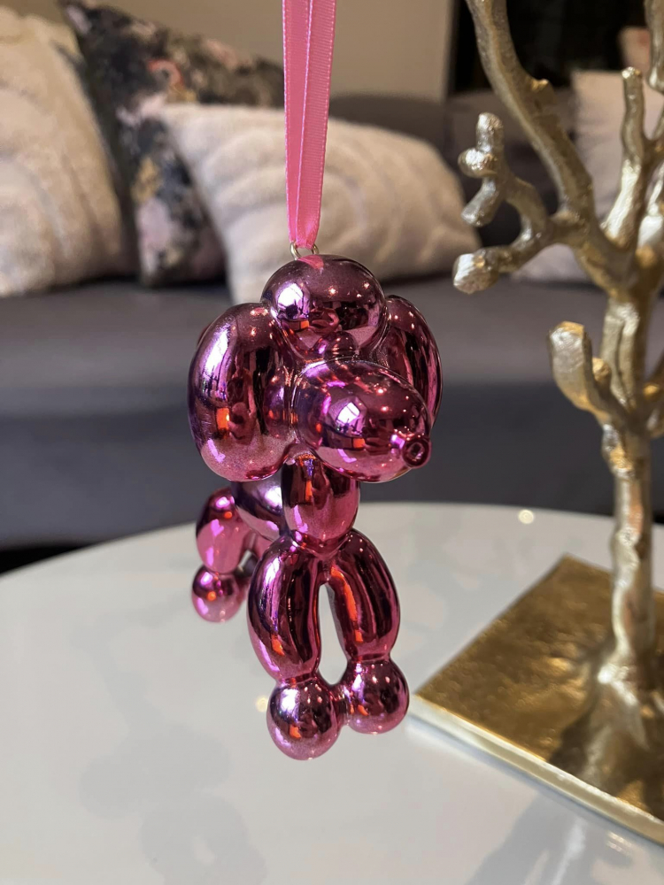 Balloon Dog Bauble on a pink ribbon