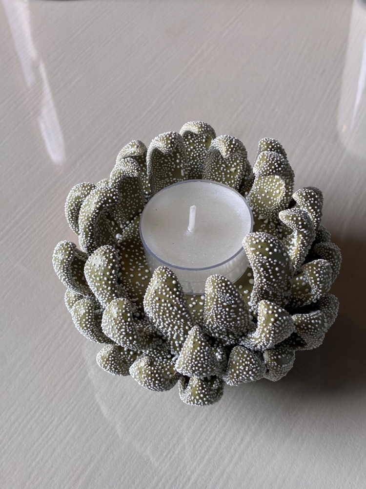 A beautifully crafted porcelain t-light holder inspired by the soft, layered petals of a blooming peony.