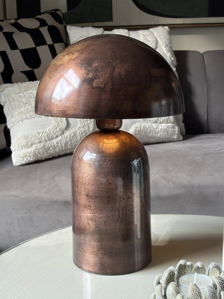 This mushroom-shaped lamp finished in a rich burnt bronze tone, designed to bring warmth and character to any interior.