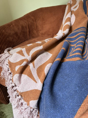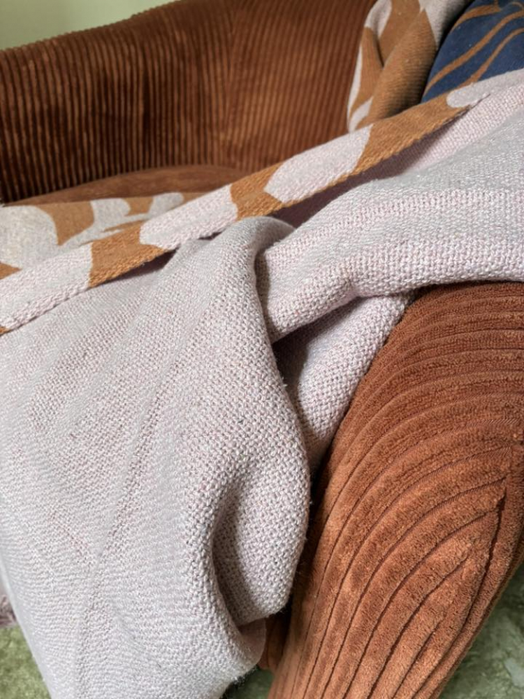 The throw is adorned with light fringes, which contribute to a warm and cozy atmosphere at home.