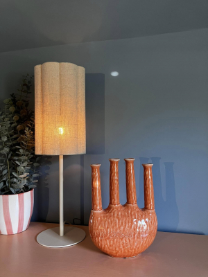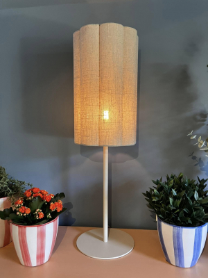 Its elegant fluted shade adds a subtle texture, creating a soft diffusion of light that enhances any space with a warm, ambient glow.
