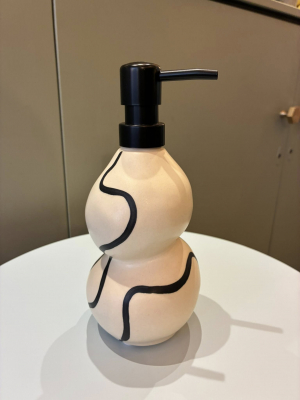 The hand-painted black pattern on the light beige background provides a nice contrast. Use it for hand soap in the bathroom or kitchen.