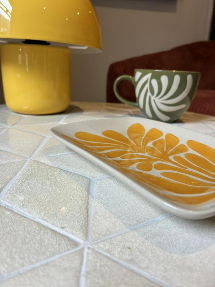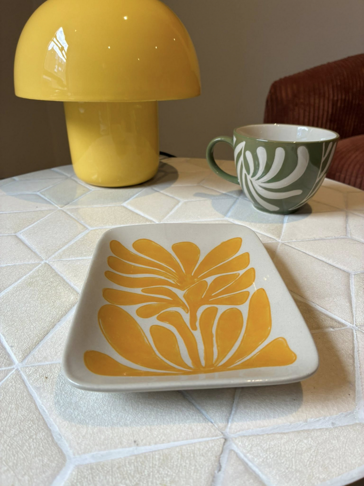Add a touch of whimsical charm to your space with this hand-painted ceramic plate.