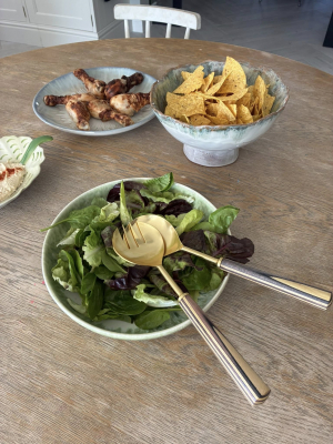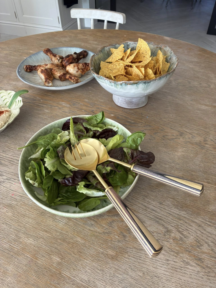 The salad set serves as a functional and elegant accessory for everyday meals as well as festive occasions.