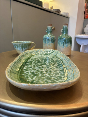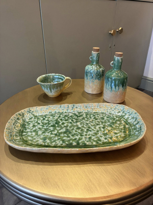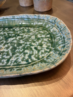 Use this plate to bring color and celebration to your table setting. Each plate is Unique with its green reactive glaze!