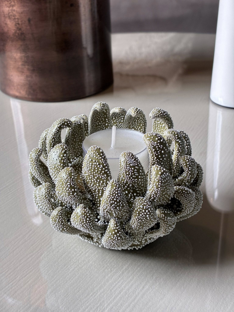 A beautifully crafted porcelain t-light holder inspired by the soft, layered petals of a blooming peony.