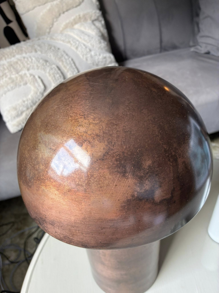 This mushroom-shaped lamp finished in a rich burnt bronze tone, designed to bring warmth and character to any interior.