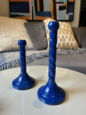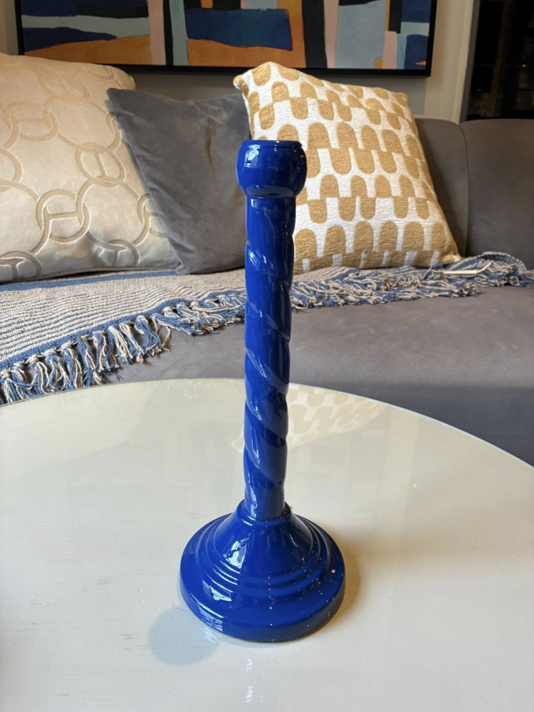 Add a touch of elegance with this navy blue metal candlestick, beautifully designed with a subtle twisted detail that brings depth and character to its sleek silhouette. The rich navy finish offers a modern yet timeless feel, effortlessly complementing both contemporary and classic interiors.