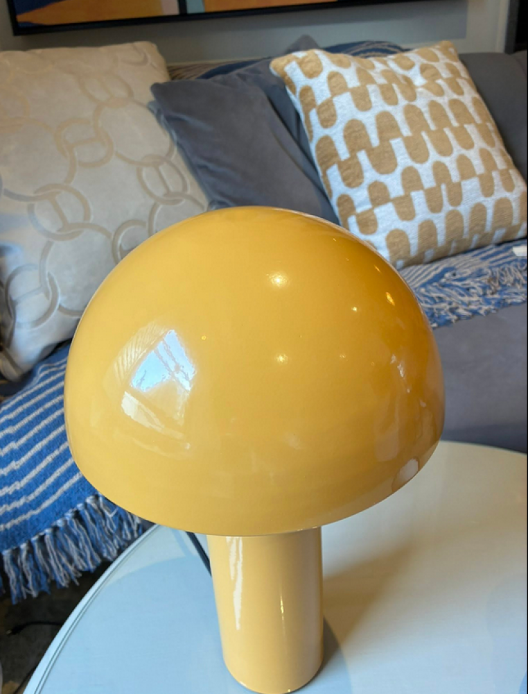 Bring a playful yet refined accent to your space with this mustard mushroom lamp, expertly crafted from durable metal.