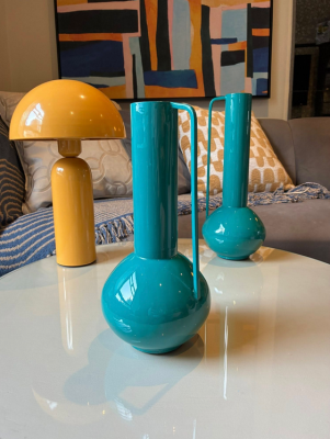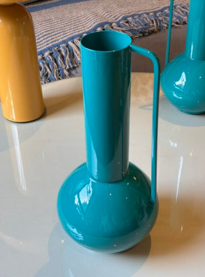 Elevate your interiors with this modern decorative vase, expertly crafted from metal and finished in a glossy teal.