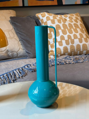 Elevate your interiors with this modern decorative vase, expertly crafted from metal and finished in a glossy teal.