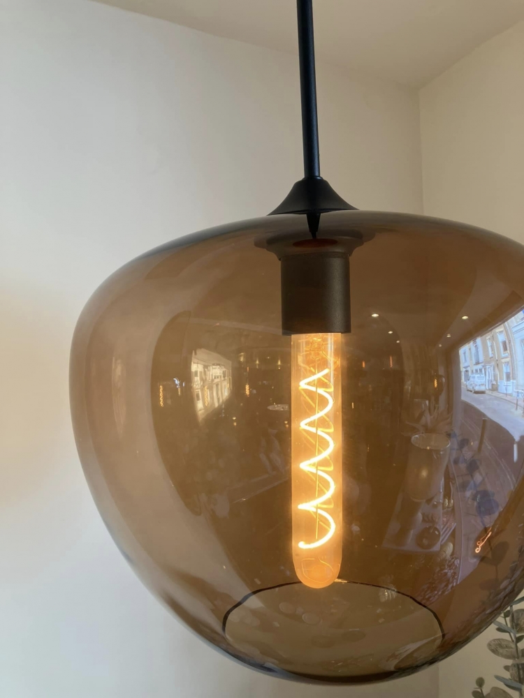 Great for adding colour and intrest to any home, we would pair it with a spiral filament bulb.