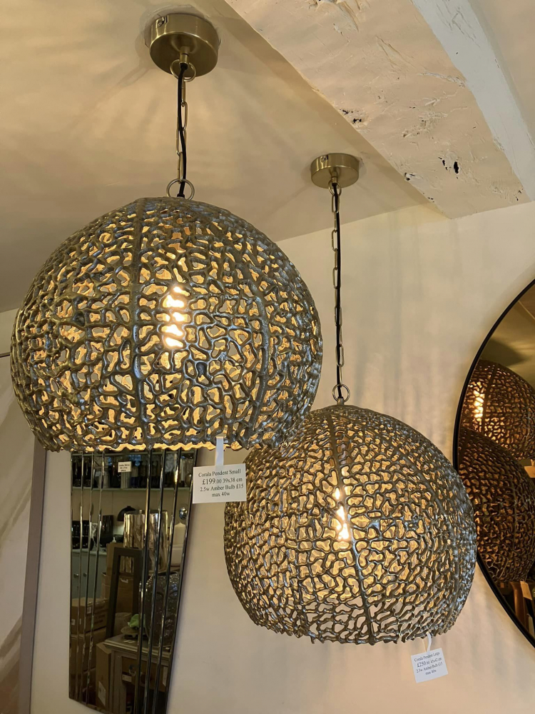 The Glorious Corala Lights that we have sold as table lights we have as pendent lights.