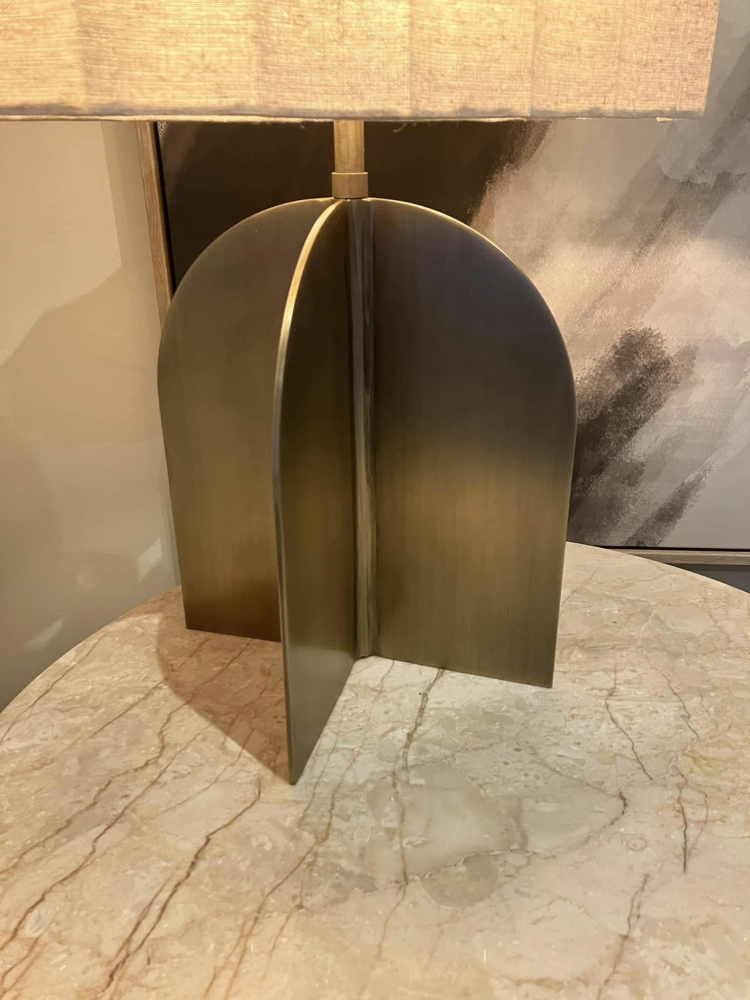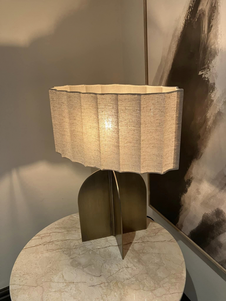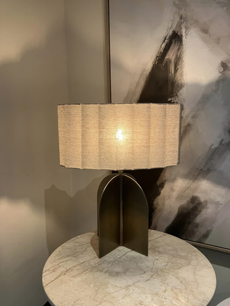 Introducing our exquisite Bronzed Cut Out Design Lamp with a Fluted Oatmeal Shade, a stunning fusion of artistry and functionality that seamlessly blends modern aesthetics with timeless charm.