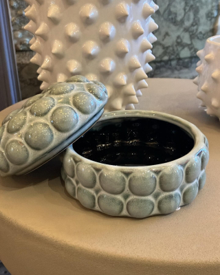 This ceramic bobble box is a delightful fusion of functionality and charm. Crafted with care from high-quality ceramic material, its smooth surface is adorned with intricate details that catch the eye. The box itself is designed with a rounded shape, reminiscent of a playful bobble, adding a touch of whimsy to any space.