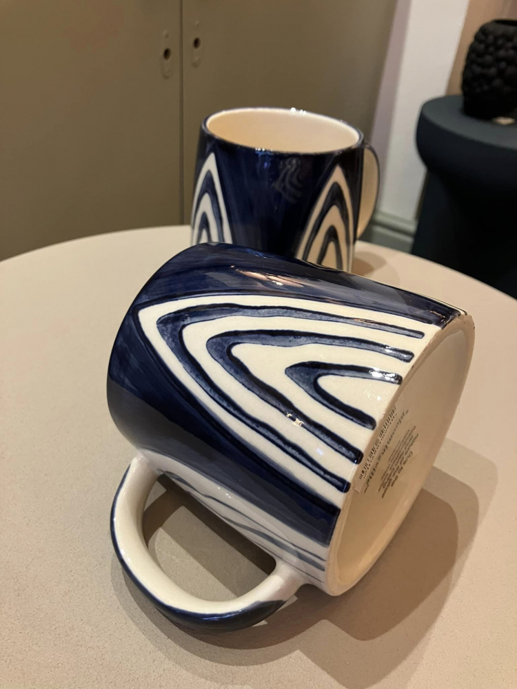 Fun and enchanting, this handmade mug is a delight for your favourte beverages. Handpaint deep navy blue witha gloss finish. D14,5 x H11 cm