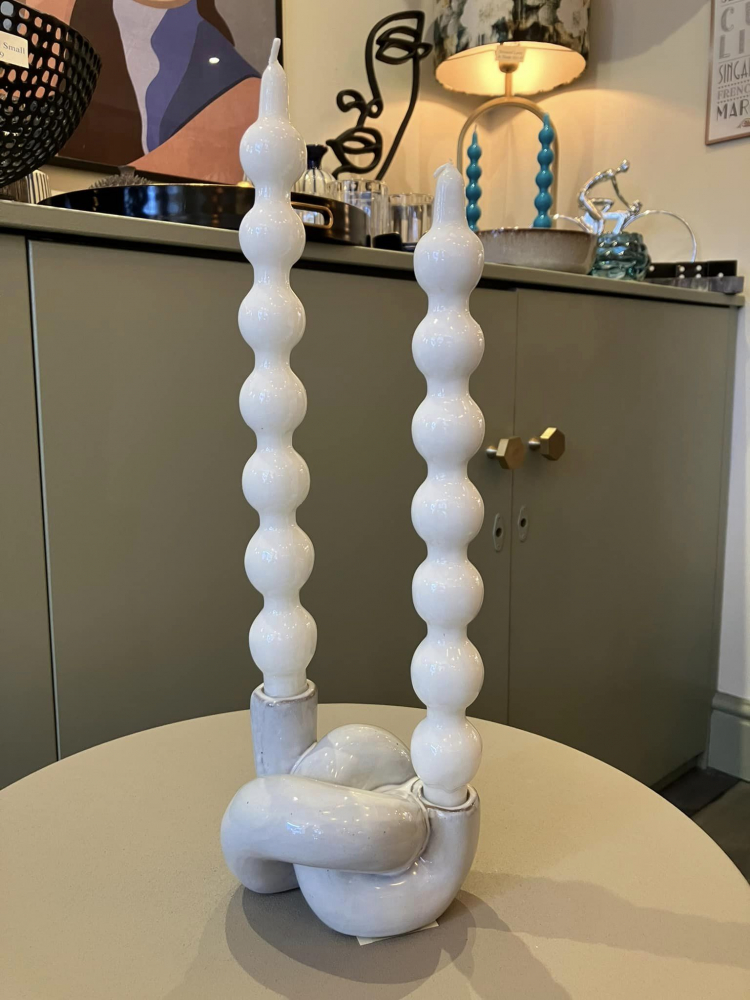 The Twist Candle holder made of stoneware in a white shade, giving it a Nordic and minimalist look.