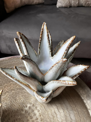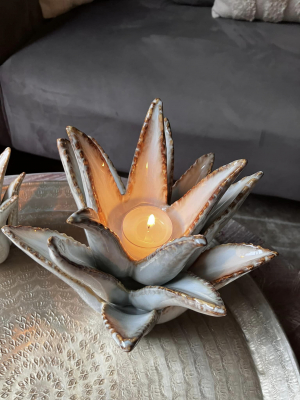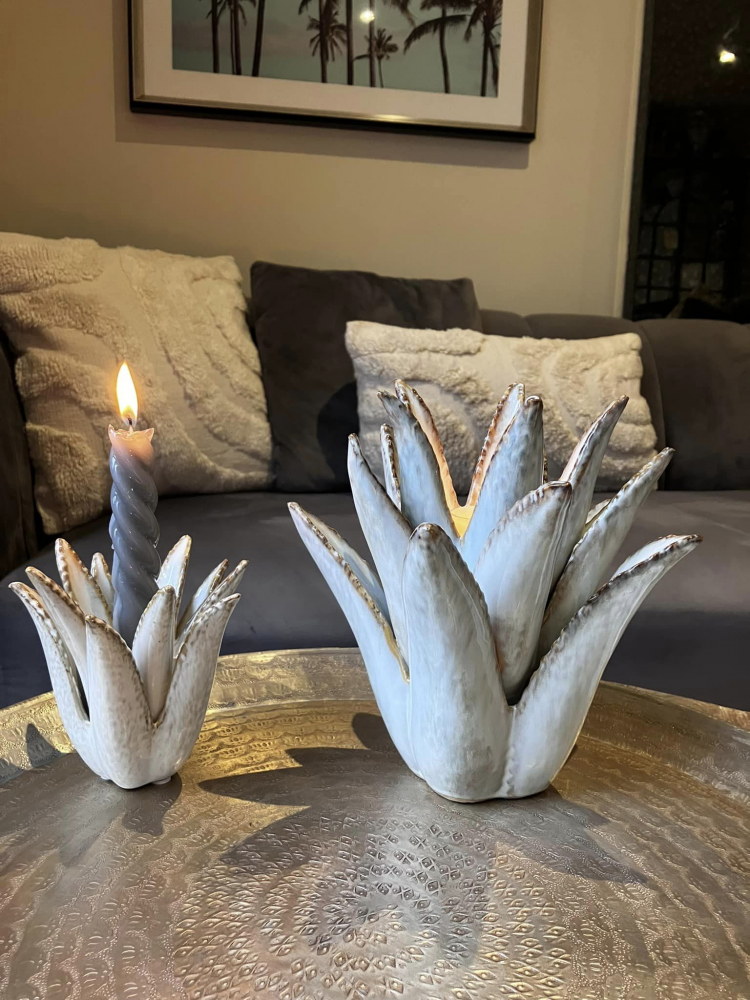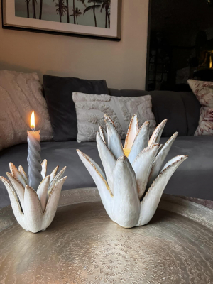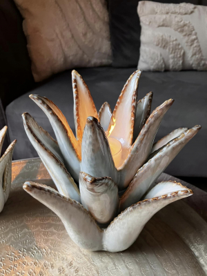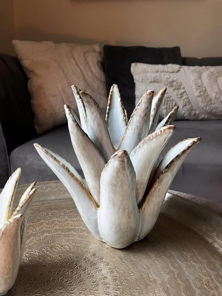 This Charming ceramic cactus tealight holder is a whimsical decorative piece that brings a touch of the desert to your space. Crafted from glazed ceramic.