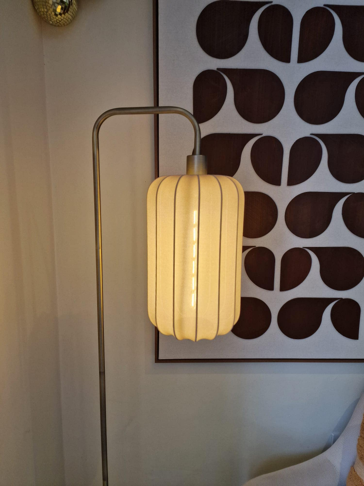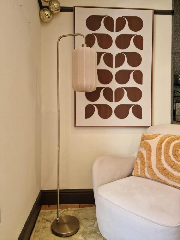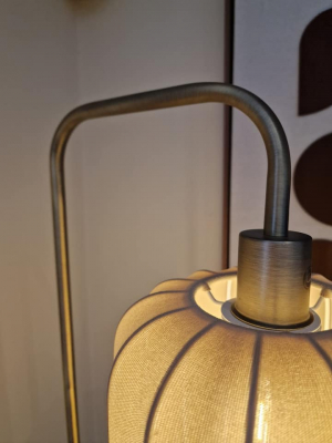This bronzed and taupe floor lamp combines warm, metallic tones with soft, neutral hues for a sophisticated and balanced look.
