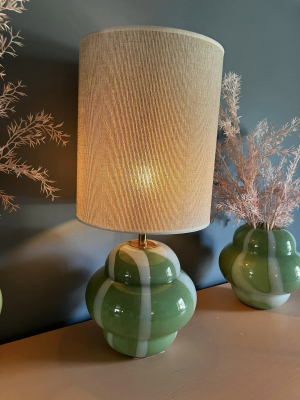 The base has a soft, cloud form, adorned with an organic, swirling green and white stripes, creating an artistic fun aesthetic.